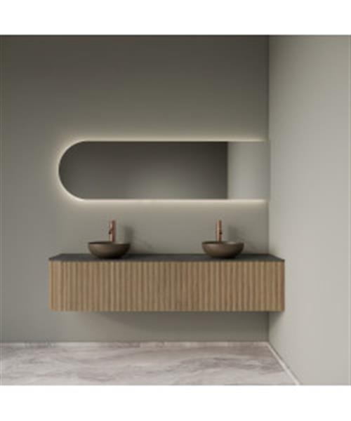 Transform je badkamer met deze prachtige halfronde hangende meubelset die Oostenrijkse kwaliteit combineert met modern design. De Alluro serie staat bekend om zijn verfijnde afwerking en functionele elegantie.