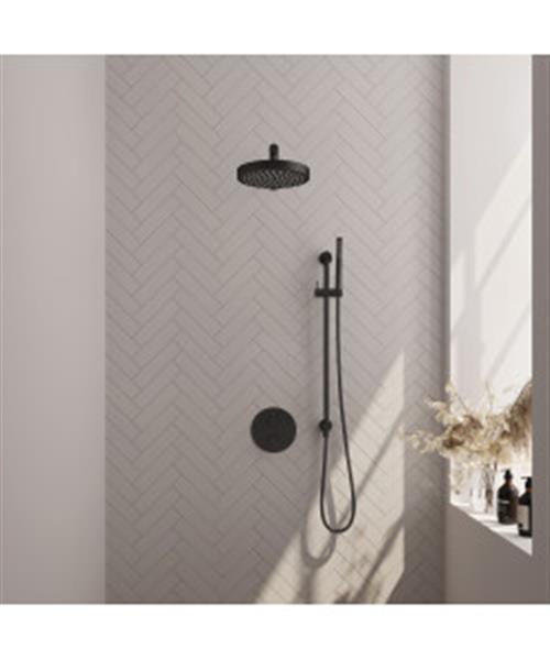Brauer Stripe thermostatische inbouw regendouche 3-weg rond SET 43 met 25 cm douchekop en rechte muurarm en staaf handdouche en doucheslang en geintegreerde glijstang mat zwart