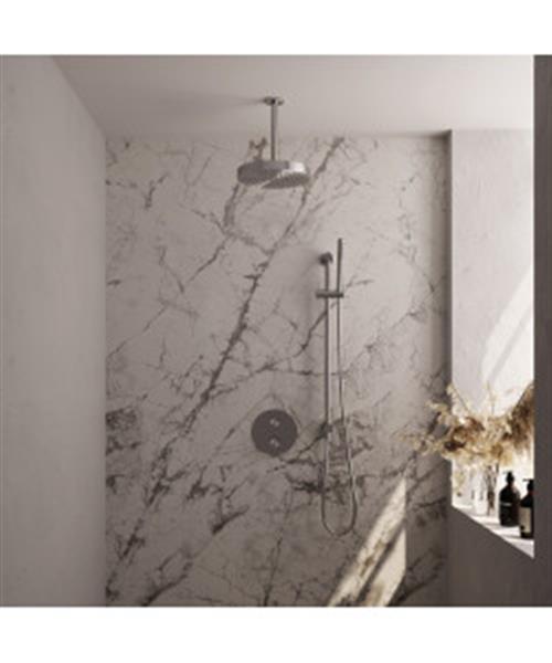 Brauer Stripe thermostatische inbouw regendouche 3-weg rond SET 45 met 25 cm douchekop en plafondarm en staaf handdouche en doucheslang en geintegreerde glijstang RVS-kleurig geborsteld PVD
