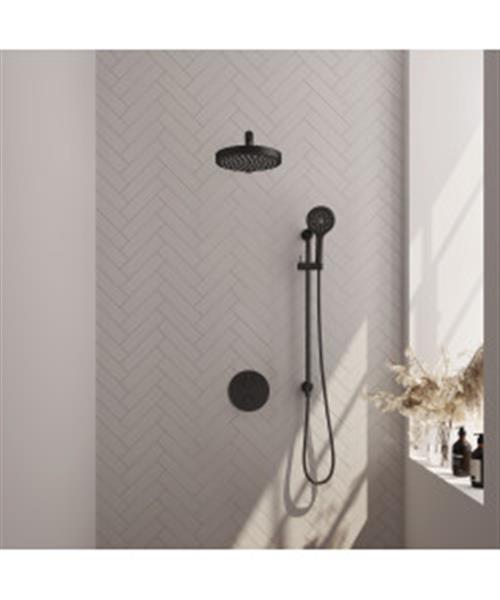 Brauer Stripe thermostatische inbouw regendouche 3-weg rond SET 46 met 25 cm douchekop en rechte muurarm en 3-standen handdouche en doucheslang en geintegreerde glijstang mat zwart