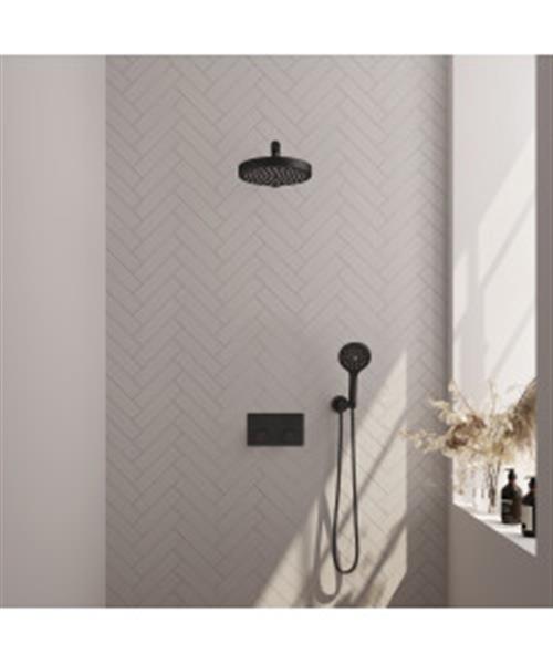 Brauer Stripe thermostatische inbouw regendouche met drukknoppen SET 28 met 25 cm douchekop en rechte muurarm en 3-standen handdouche en doucheslang en wandaansluitbocht mat zwart