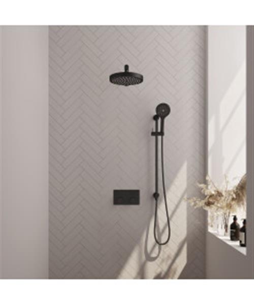 Brauer Stripe thermostatische inbouw regendouche met drukknoppen SET 34 met 25 cm douchekop en rechte muurarm en 3-standen handdouche en doucheslang en geintegreerde glijstang mat zwart