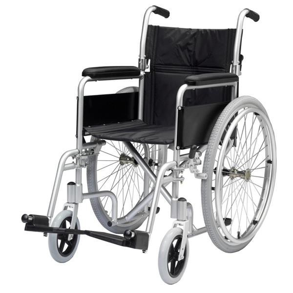 Deze inklapbare aluminium rolstoel is door zijn lichte gewicht ideaal om mee te nemen . Daarbij is hij comfortabel uitgerust met eenvoudig afneembare voetsteunen en gepolsterde armleuningen.