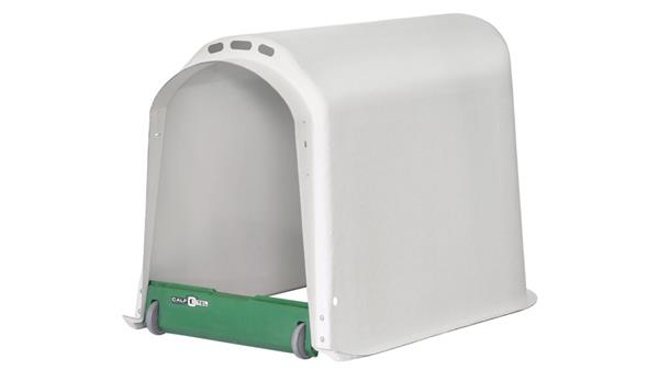 Kalveriglo met drempel en wielen, om kalveren van 0 tot 6 weken oud te huisvesten.