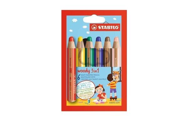 De Woody 3 in 1 is een kleurpotlood, waskrijt en aquarelpotlood in één. Er kan zowel op papier en karton worden gekleurd (zelfs op zwart papier!) als op gladde oppervlakken, zoals ramen, kunststof, regenlaarzen, brooddozen, noem maar op. Met een borstel en water erbij kunnen prachtige kunstwerken worden gemaakt. Kortom: een echte alleskunner!