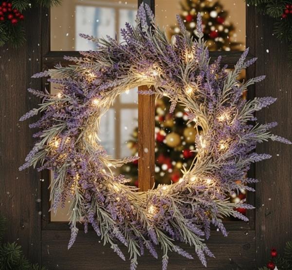 Lavendel Krans – Kunststof - Inclusief lampjes, batterijen, Lavendelbloemetjes & Etherische Olie - 4