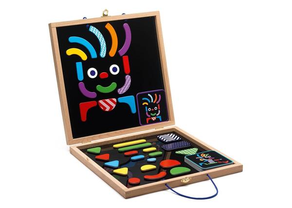 Een prachtige houten draagtas met magnetische vormen voor het creëren van allerlei leuke, fantasierijke mensen. Open de koffer en plaats de vormen op het magnetisch veld van de koffer. Laat kinderen hun fantasie de vrije loop terwijl ze eindeloos verschillende creaties maken. Door de sluiting en het handvat neem je het makkelijk mee voor onderweg. Perfect voor op reis en lange autoritten.