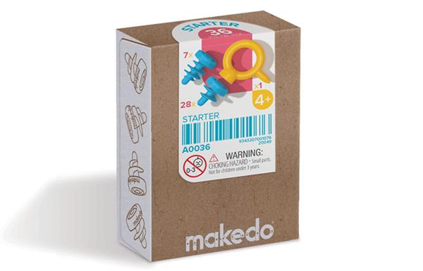 De Starter Makedo set is ideaal om te beginnen met bouwen met karton of als uitbreidingsset bij de Makedo Explore set. De set heeft 28 gewone schroeven die 3 lagen karton kunnen verbinden, 7 extra grote schroeven die 6 lagen karton kunnen verbinden en een mini tool. De mini tool is een priem en schroevendraaier in 1!