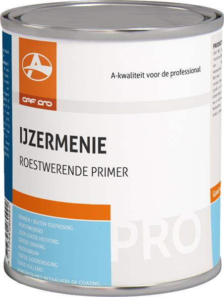 OAF PRO IJzermenie is een roodbruine, roestwerende primer voor metaal. Deze IJzermenie heeft een zeer goede hechting op metalen ondergronden. Toe te passen op nieuw staalwerk, staalconstructies, hekwerken, machines, landbouwvoetuigen, vaartuigen enz. Ideaal als voorbehandeling, waarna er bijvoorbeeld Metaalverf overheen gebracht wordt.Eigenschappen: Zeer goede hechting op metalen ondergrondenRoestwerendGoede dekkingGoede doordroging Kwaliteit voor de laagste prijs!