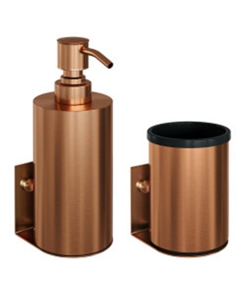 Zeepdispenser en Beker BRAUER Model A Incl. Wand Ophanging en Magnetisch opzetvlak Geborsteld Koper